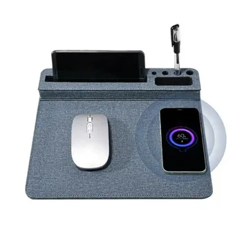 • 10W/15W Wireless Charging Foldable PU Leather Premium Handmade Multifunction Modern Style Mouse Pad Office Tool